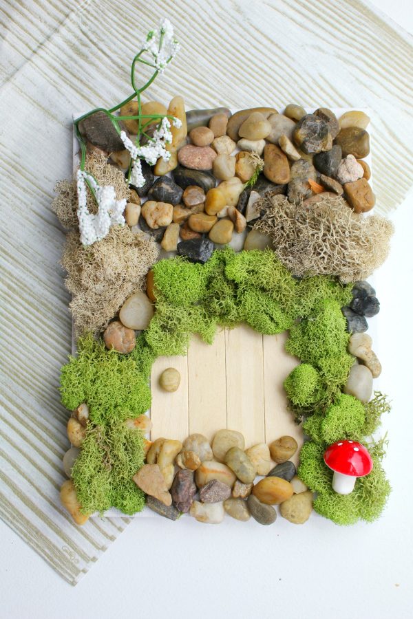 Looking to make a cute DIY fairy garden door? Grab some wooden craft sticks and other supplies at your local Dollar Store and use this easy tutorial to make one!