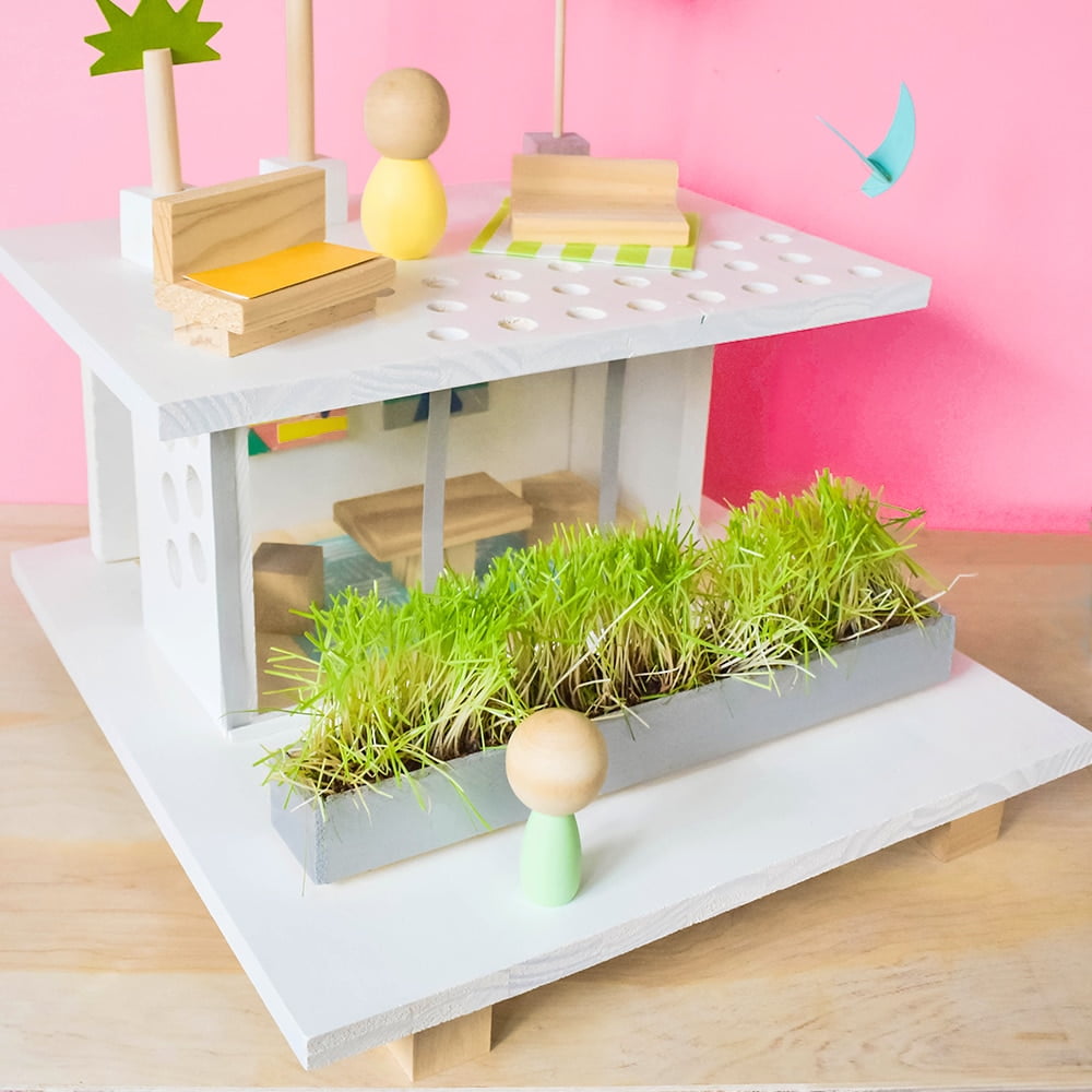 Check out this cute modern DIY beach dollhouse with supplies from the Dollar Tree!