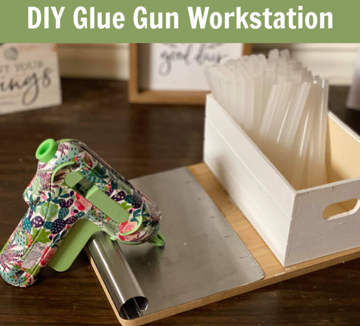 This craft tutorial shows how to make your own glue gun workstation using items from the Dollar Tree Store like a wooden crate and a metal chopper.