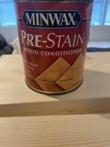 Softwoods are known for being blotchy when stained. How do you get around this? Using a wood conditioner or pre-stain conditioner to the bare wood is key to creating a uniform finish on your piece of wood. Don’t skip this step!