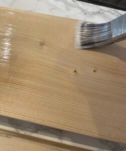 I’m going to take you step by step on how I stained the wood surface with a few oil-based stains to enhance the natural color. I also used a little paint to finish the edges of the shelves, but I won’t go into too much detail on that because I’ll be discussing the stain process today.